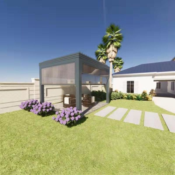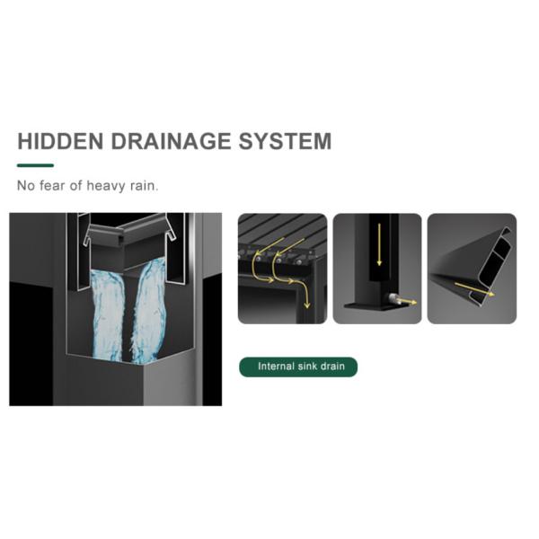 2) With an electric motor system and aluminum extrusions specially designed,the louver blades of the aluminum pergola are closed completely to prevent the sunlight and rain.